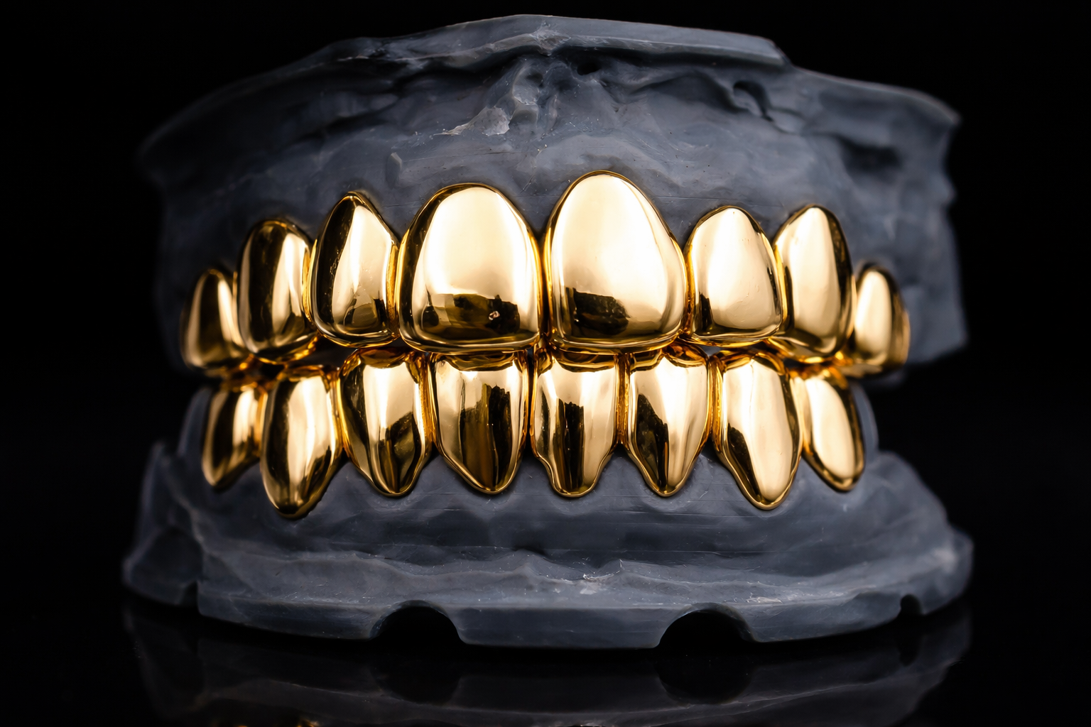 Handcrafted solid gold grills, finished in your choice of yellow, white, or rose gold.